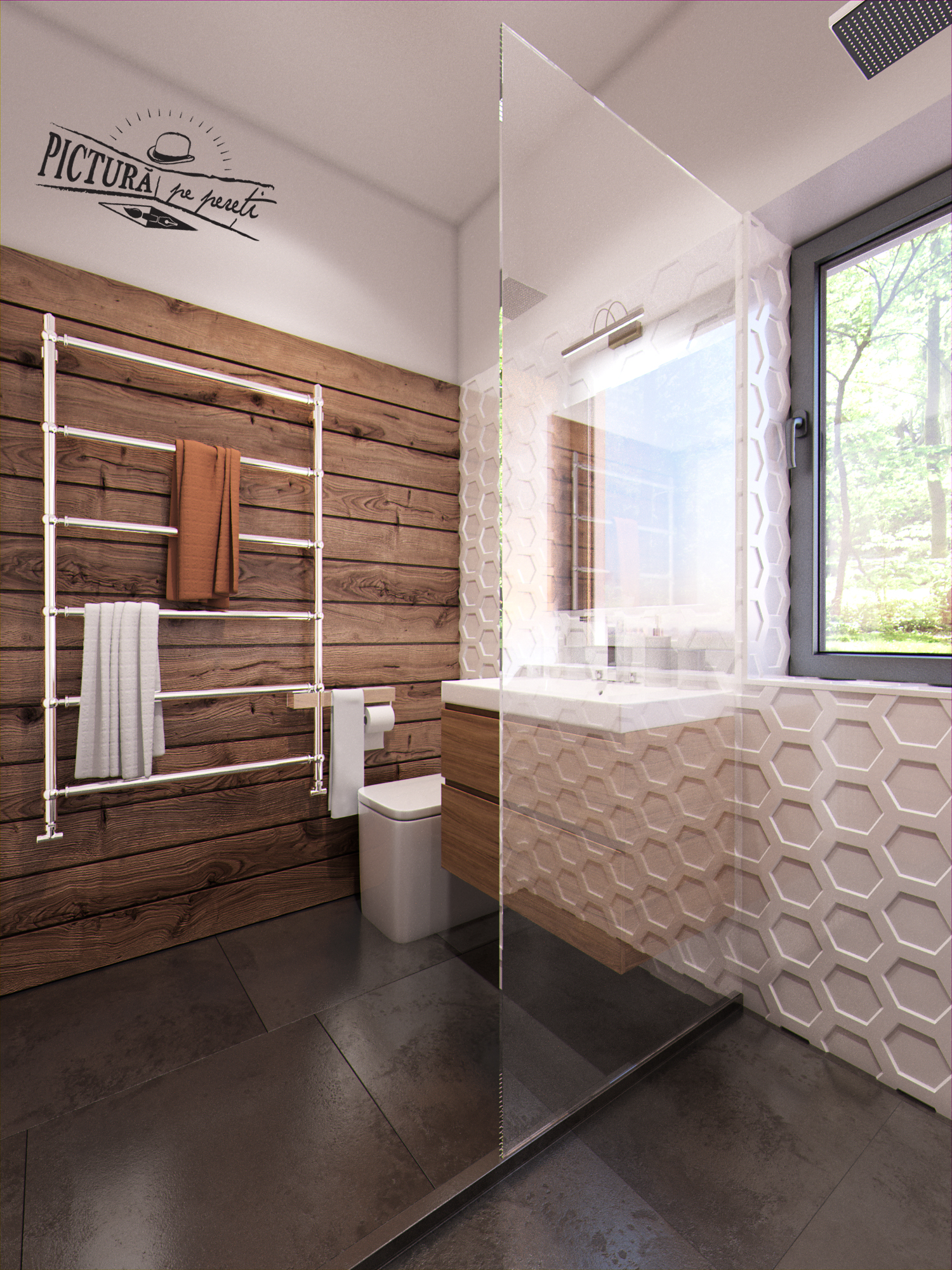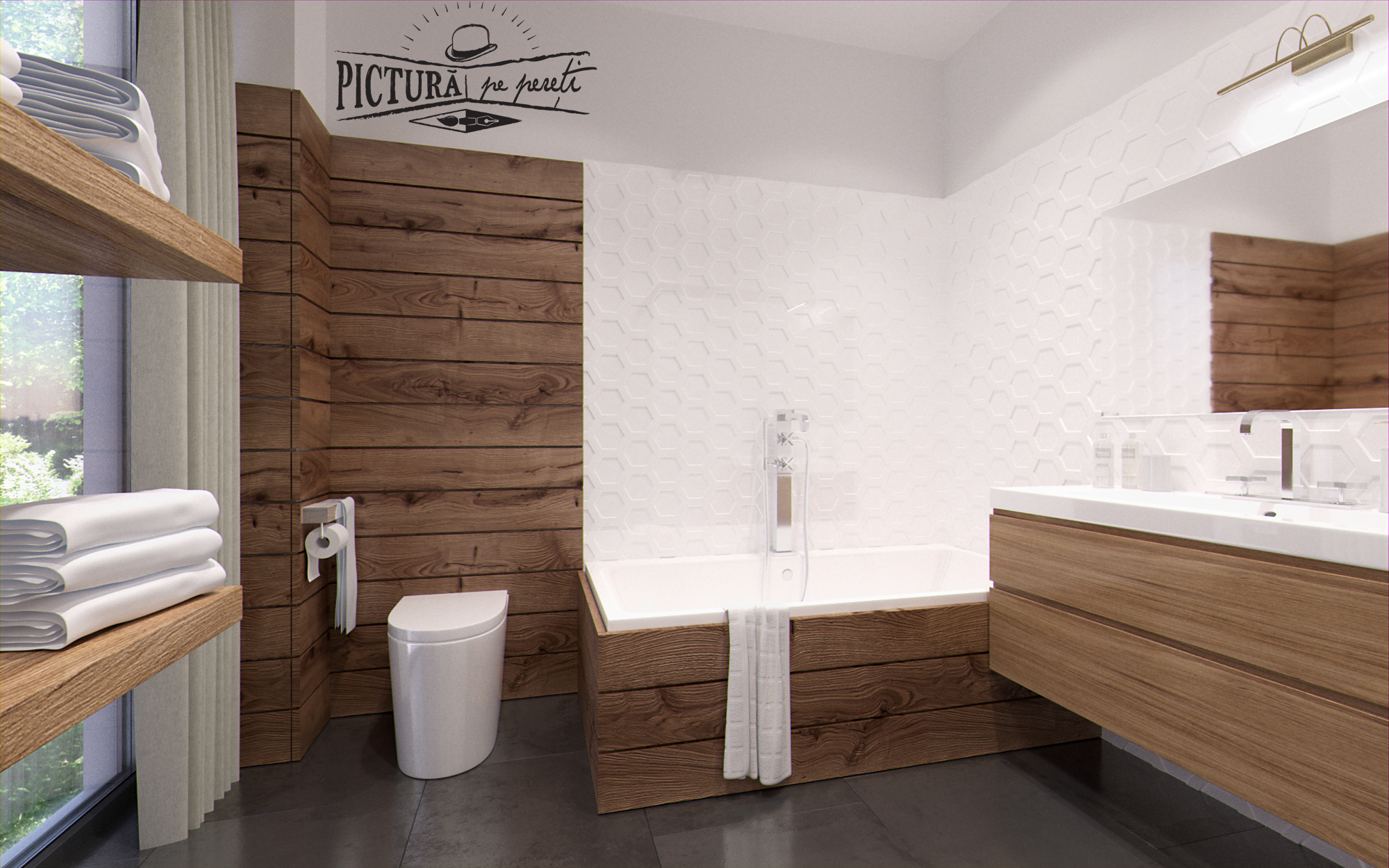 Plecând de la aceste idei de bază ale stilului nordic am realizat proiectul de mai jos.În acest context am folosit un lemn special pentru baie (rezistent la umezeală și căldură).Cele 3 băi se află în acelaș imobil și deservesc unei familii alcătuită din 4 membri.